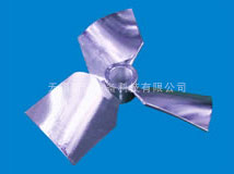 旋槳式攪拌器由2~3片推進(jìn)式螺旋槳葉構(gòu)成,工作轉(zhuǎn)速較高,葉片外緣的圓周速度一般為5~15m/s。旋槳式攪拌器主要造成軸向液流,產(chǎn)生較大的循環(huán)量,適用于攪拌低粘度(<2Pa·s)液 體、乳濁液及固體微粒含量低于10%的懸浮液。攪拌器的轉(zhuǎn)軸也可水平或斜向插入槽內(nèi),此時液流的循環(huán)回路不對稱,可增加湍動,防止液面凹陷。