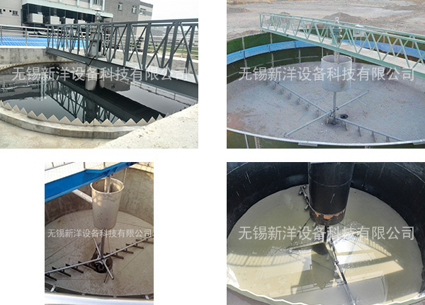 中心傳動刮吸泥機采用中心傳動,污水從進水管流入導流筒擴散后,均勻的向周邊呈輻射狀流出,呈懸浮狀的污泥經沉淀后沉積于池底,驅動裝置帶動中心豎架旋轉,并帶動刮臂及刮泥板轉動,刮泥板將污泥刮集后由吸泥管靠池內靜水壓抽吸至中心泥缸,再通過中心排泥管排出池外,水面上的浮渣通過旋轉撇渣裝置導入排渣斗內排出池外;而上清液則通過三角形出水堰板溢入出水槽內排出。我公司將會針對用戶不同工藝控制條件要求,做相應的配套調整設計,以確保泥漿沉降分離和洗滌效果,減少浪費,節約投資成本。