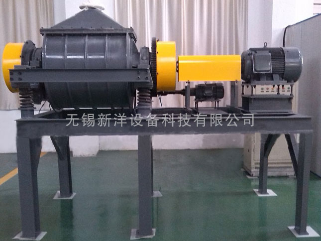 振動研磨機是高效制粉設備,該機是利用圓筒的高頻振動,使筒體中的研磨介質依靠慣性力沖擊物料,磨介通常為φ16-φ36mm的圓鋼,鋼棒經過滲碳和淬火處理,硬度達到HRC55以上。入料粒度>15mm時取較大直徑,入料粒度<15mm時取較小直徑,并采用兩種以上規格鋼棒(鋼球)搭配使用。工作時,電動機通過撓性連軸器和萬向連軸器帶動帶有偏心重錘的激振器的軸旋轉,使筒體產生振動,筒內的磨介和物料在筒內翻轉、沖擊,使物料在短時間內得到粉碎。